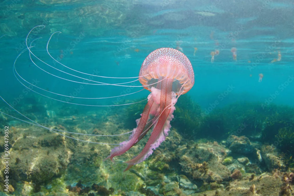 Fototapeta Piękne meduzy pod wodą w Morzu Śródziemnym, Mauve stinger Pelagia noctiluca