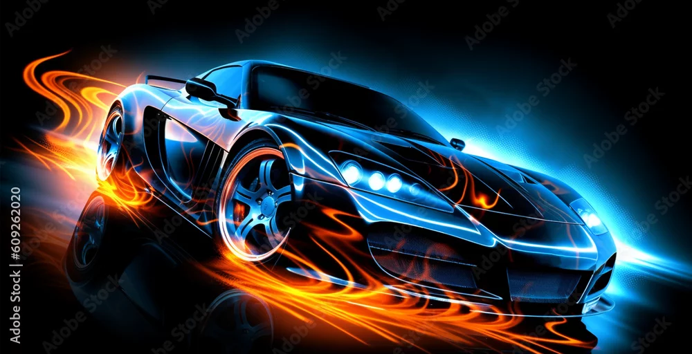 Fototapeta samochód sportowy z fantastycznym tłem światła neonowego. generatywna ai