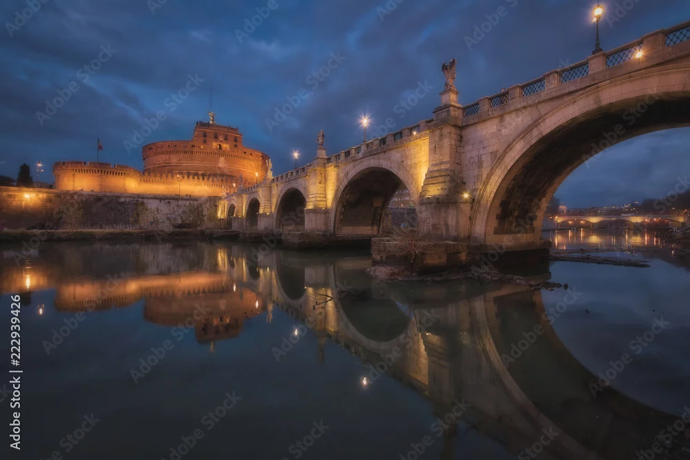 Fototapeta Zamek Świętego Anioła, Castel Sant'Angelo, wieczór w Rzymie - mosty - Picturewall.pl
