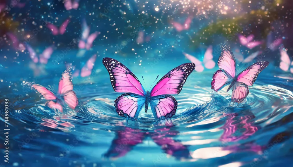 Fototapeta Kolorowe motyle na wodzie, dekoracja, generative ai