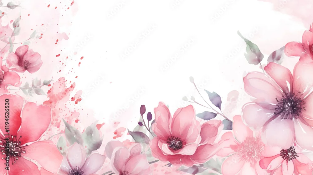Fototapeta Lush wildflower watercolor border illustration. Seamless file. Colorful watercolor flowers