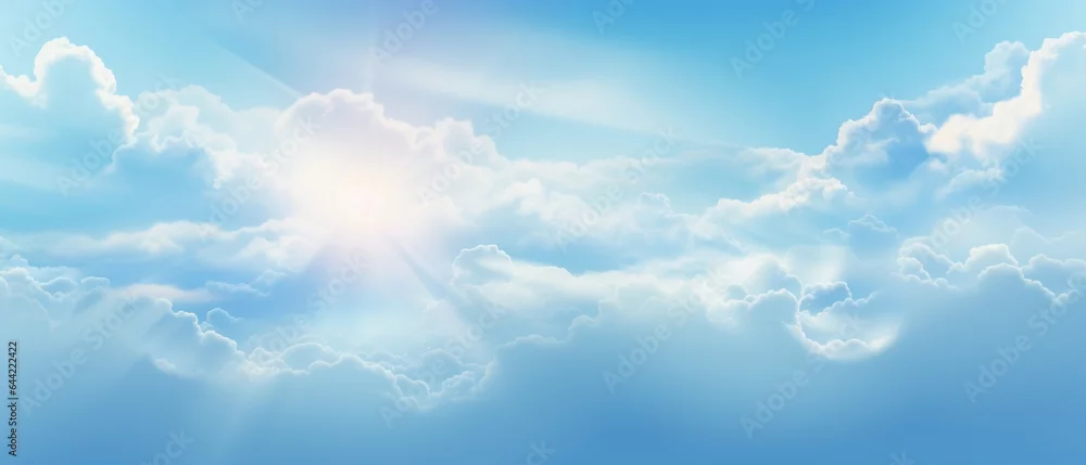 Fototapeta Błękitne tło panoramiczne - niebo z delikatnymi chmurami i obłokami - tron Boży, rajska światłość. Miejsce przebywania aniołów.