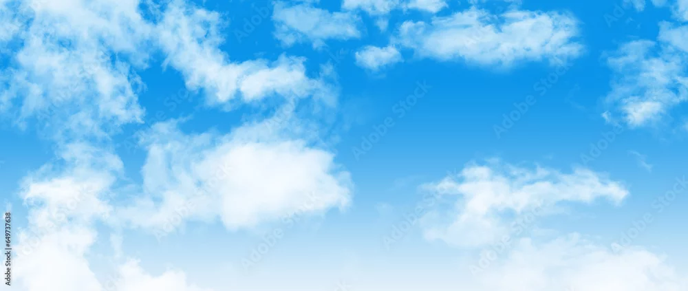 Fototapeta Niebieskie niebo, tło, białe chmury i słońce