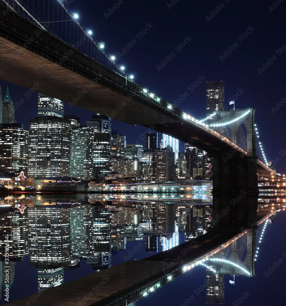 Fototapeta Brooklyn Bridge i Manhattan Skyline At Night, Nowy Jork - Nowy Jork - Picturewall.pl