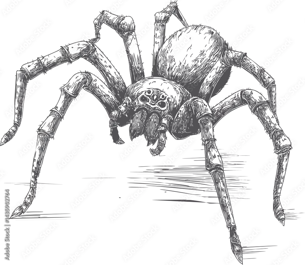 Fototapeta Detailed black and white sketch of a spider with long legs and hairy texture. Vector illustration