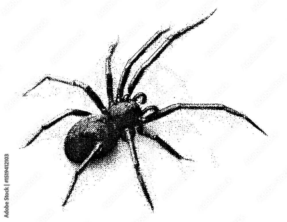 Fototapeta Halloween spider collage with vintage stippling effect, retro vector illustration, psychedelic surreal art poster, experimental grunge texture, horror theme, creepy design, eerie atmosphere.