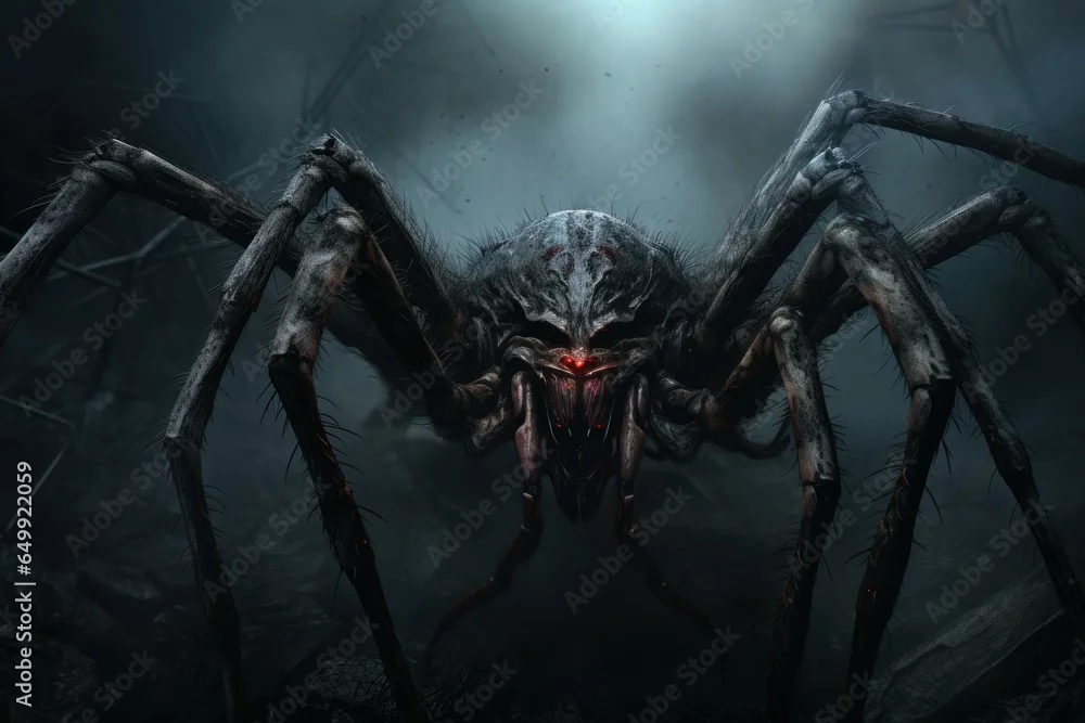 Fototapeta Ominous Creepy spider scene giant. Creature big. Generate Ai