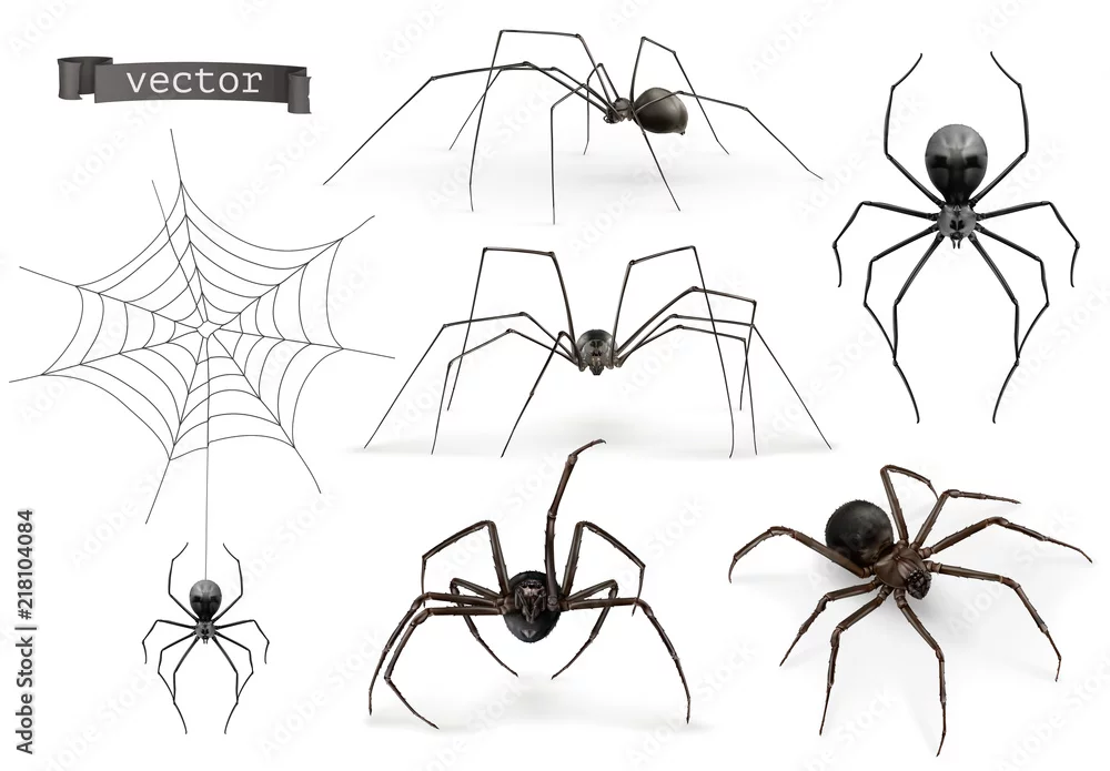 Fototapeta Realistyczny pająk. Halloween 3d wektor zestaw ikon - pająki - Picturewall.pl
