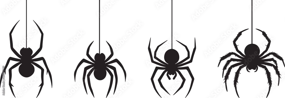 Fototapeta Silhouette of a spider hanging from a web, halloween vector