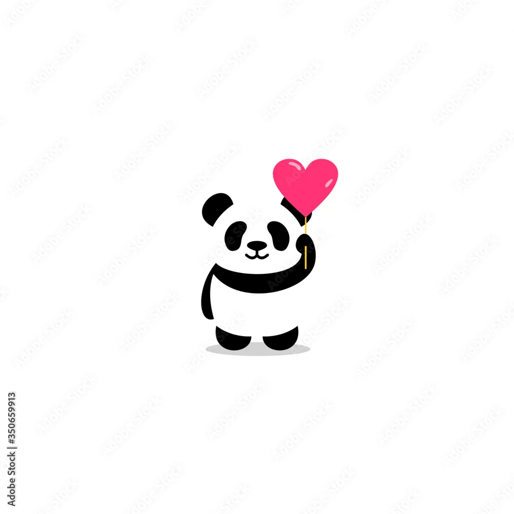 Fototapeta Cute panda with heart balloon cartoon icon, vector illustration