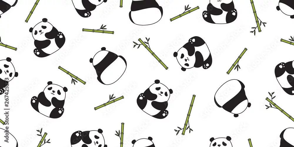 Fototapeta Niedźwiadkowy panda niedźwiedzia polarnego bezszwowy miś pluszowy bambusowy szalika powtórki tapety płytki tła postać z kreskówki doodle ilustracja - pandy - Picturewall.pl
