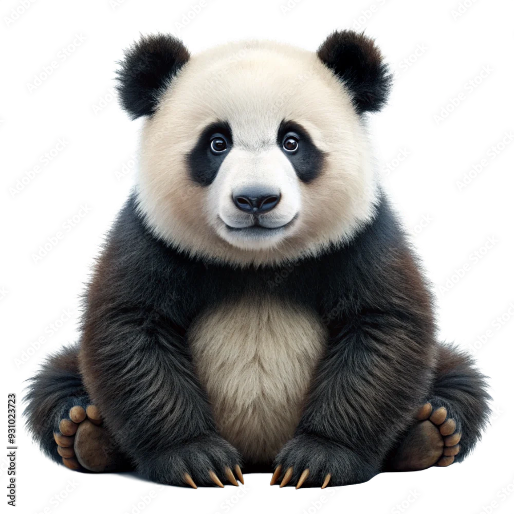 Adorable Panda Cub: A captivating portrait of a cute panda cub, sitting against a white background, with a sweet, innocent expression. This adorable image is perfect for adding a touch of cuteness t