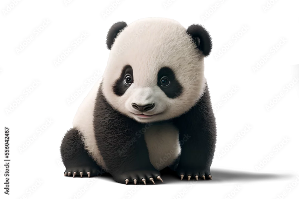 Fototapeta Cute baby panda cub sitting, 3D illustration on isolated background