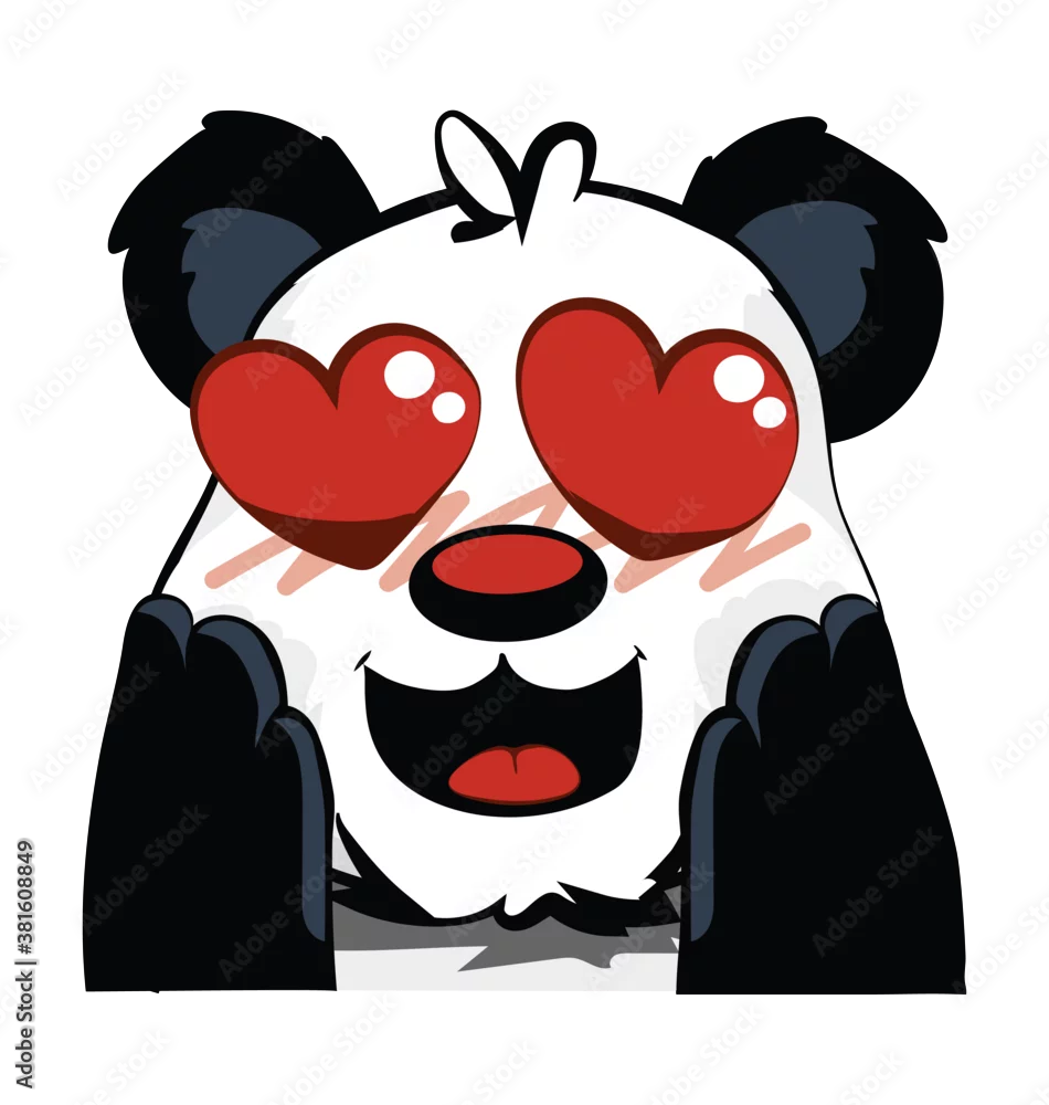Fototapeta Cute panda bear with hearts for eyes - Love emote - Vector emoticon Isolated - pandy - Picturewall.pl