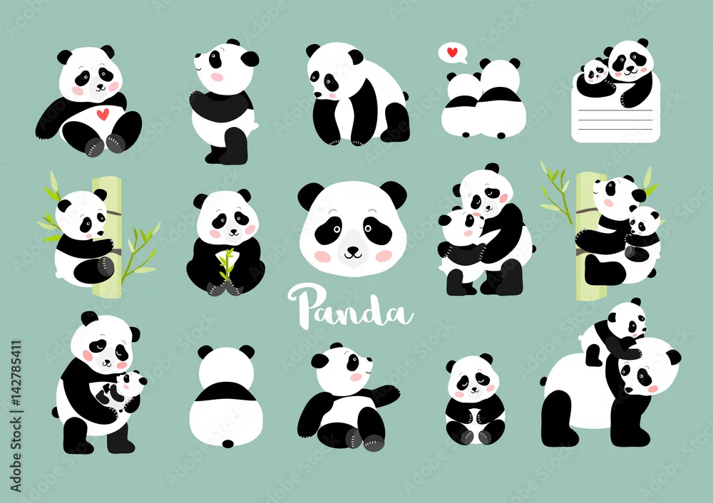 Fototapeta Set pand postacie, odosobniona wektorowa ilustracja - pandy - Picturewall.pl