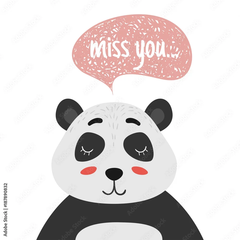 Fototapeta Tęsknię za Tobą. Śliczna panda na białym tle. Ilustracja wektorowa na Walentynki. - pandy - Picturewall.pl