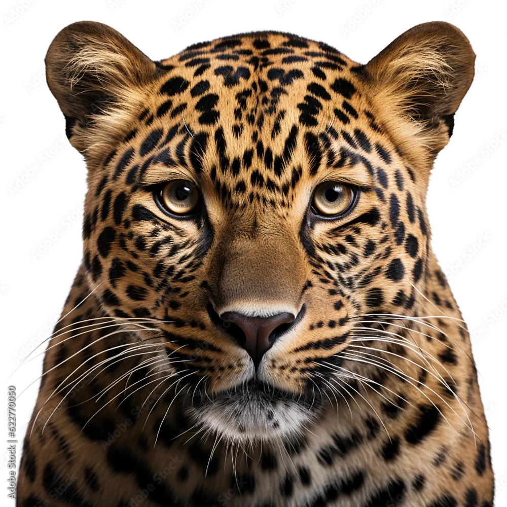 Fototapeta leopard face shot , isolated on transparent background cutout - pantery - Picturewall.pl