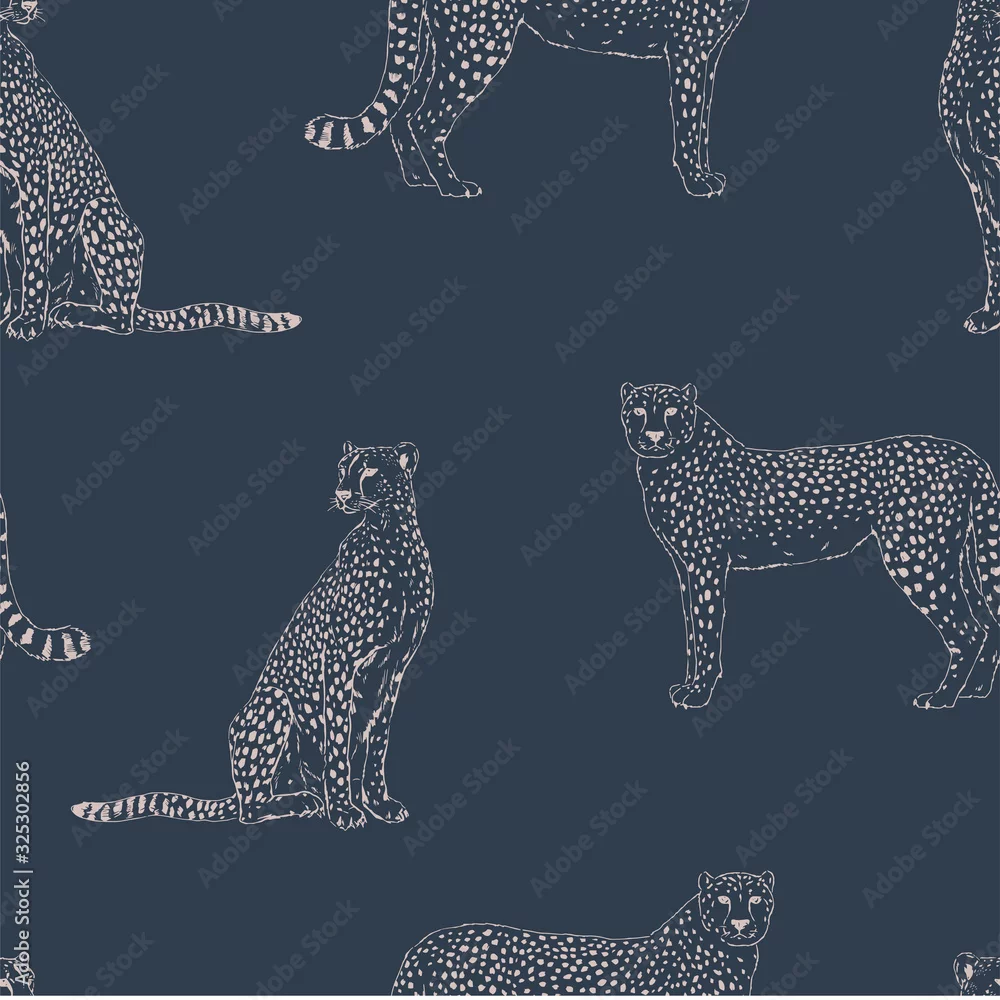 Fototapeta Cheetah hand drawn vector seamless pattern. Wild exotic cat sketch backdrop. Jaguar inky drawing. Animalistic textile print, leopard wallpaper design - pantery - Picturewall.pl