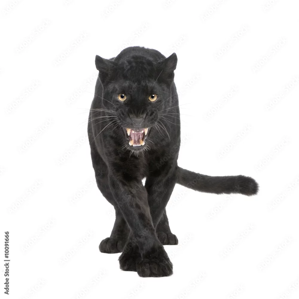 Fototapeta Czarny lampart (6 lat) przed białym tłem - pantery - Picturewall.pl
