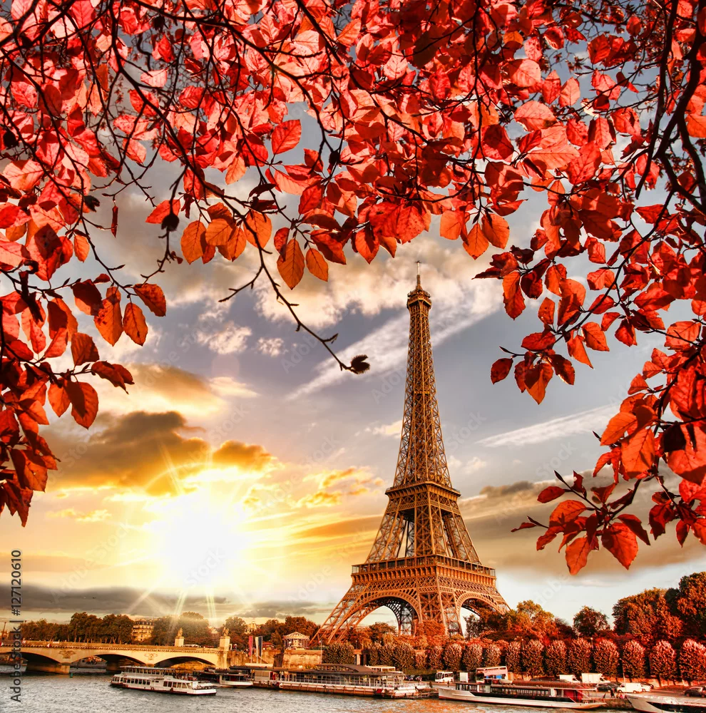 Fototapeta Wieża Eiffla z jesiennych liści w Paryżu, Francja