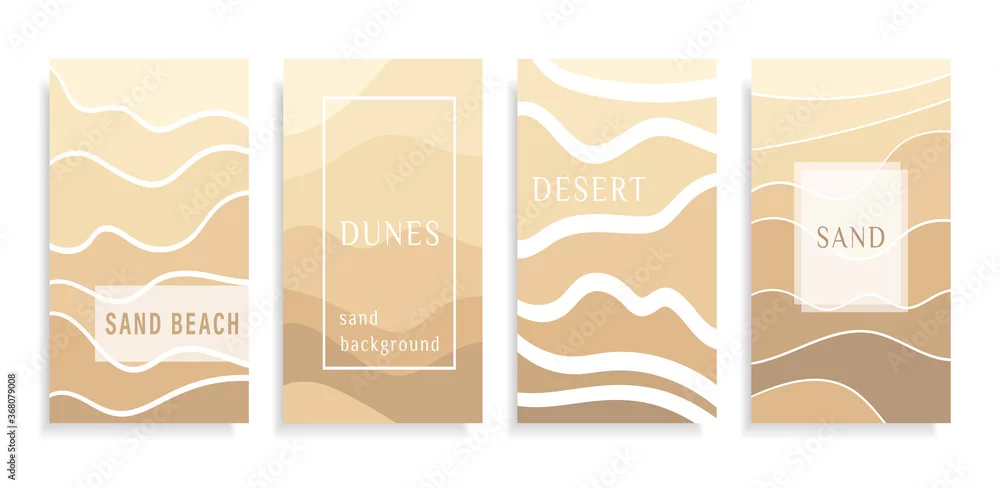 Abstract background sand on a beach or desert with a barchan and dunes of beige color. Template Sand texture with a pattern of wavy lines. Frames for text. Great for covers, fabric prints. Vector.