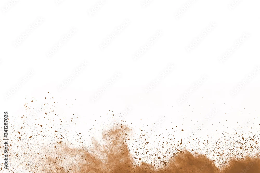 Fototapeta Brown color powder explosion on white background. Colored cloud. Colorful dust explode. Paint Holi. - piasek - Picturewall.pl