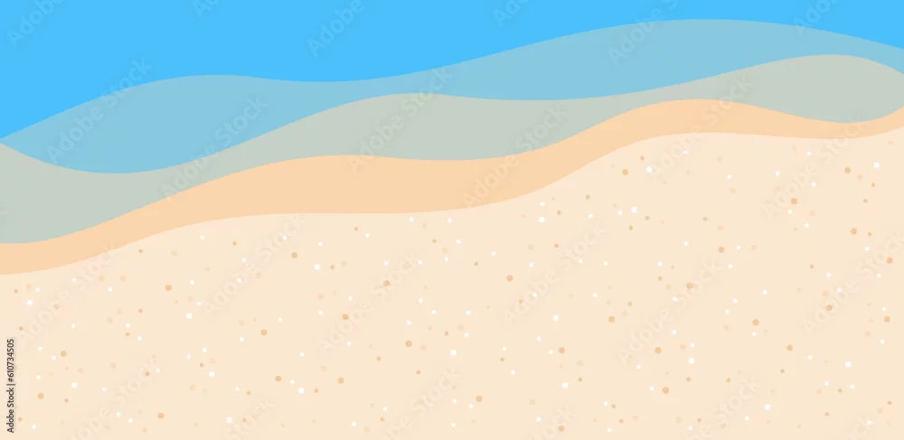 Fototapeta Sandy beach and sea waves background, top view. Flat vector illustration - piasek - Picturewall.pl