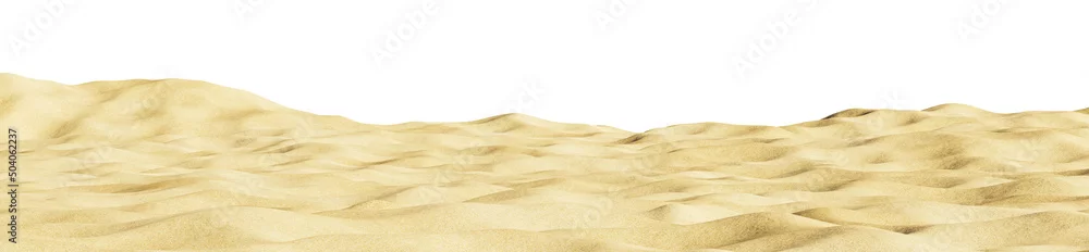 Fototapeta Tropical sandy beach isolated on a white background. Summer beach. Realistic sand texture, 3d render. - piasek - Picturewall.pl