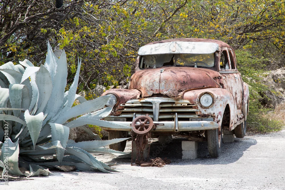 Fototapeta Piękny, całkowicie zardzewiały klasyczny samochód - Picturewall.pl