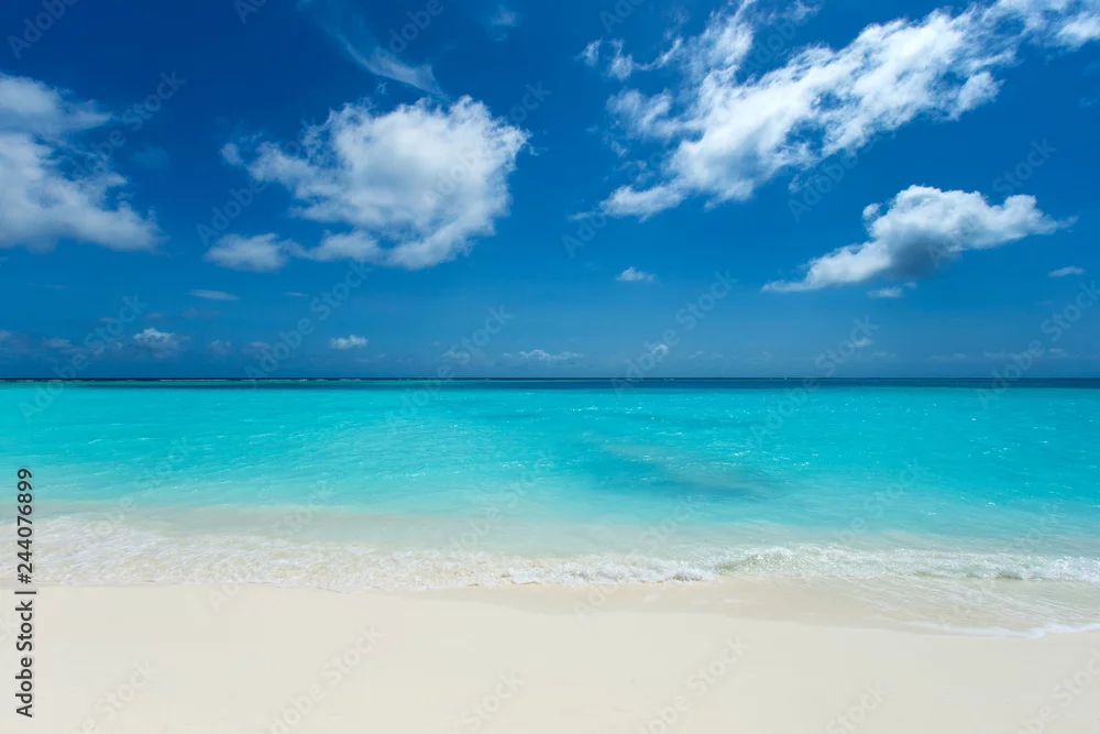 Fototapeta tropikalna wyspa Malediwów z białą piaszczystą plażą i morzem