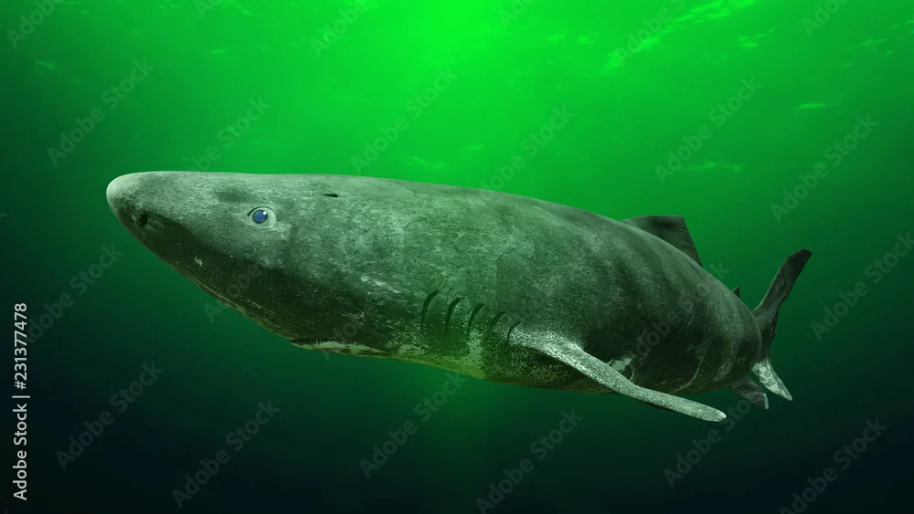 Fototapeta Rekin grenlandzki w pobliżu oceanu, Somniosus microcephalus - rekin o najdłuższej znanej długości życia ze wszystkich gatunków kręgowców