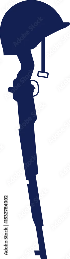Fototapeta Showing navy outline of battlefield cross with rifle, helmet and dog tags on transparent background