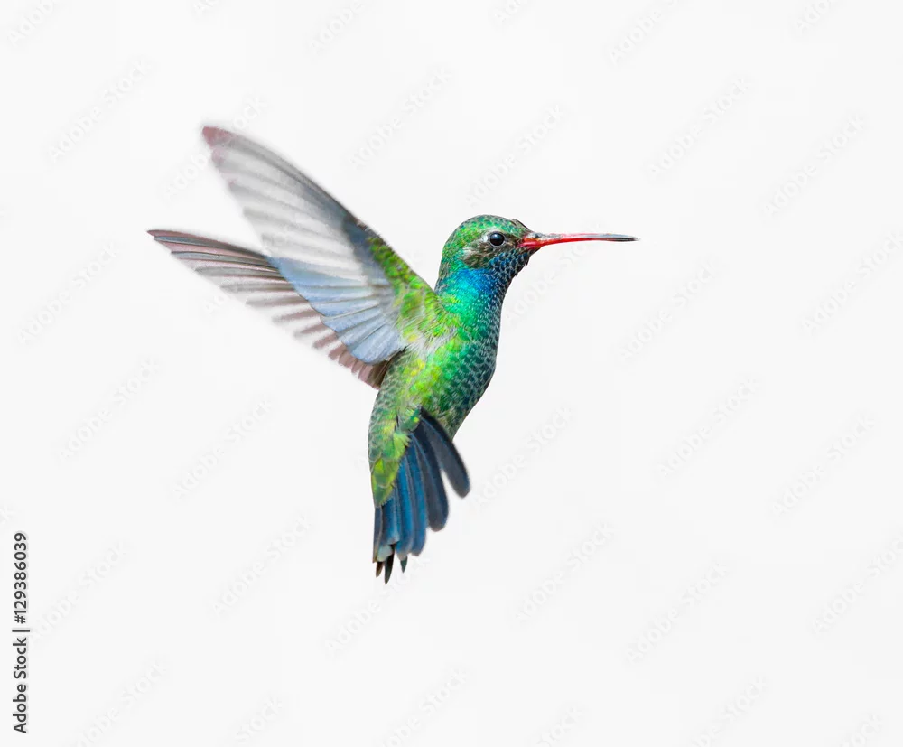 Fototapeta Kolibra. Wykorzystując różne tła, ptak staje się bardziej interesujący i wtapia się w kolory. Ptaki te pochodzą z Meksyku i rozjaśniają większość ogrodów, w których kwitną kwiaty.