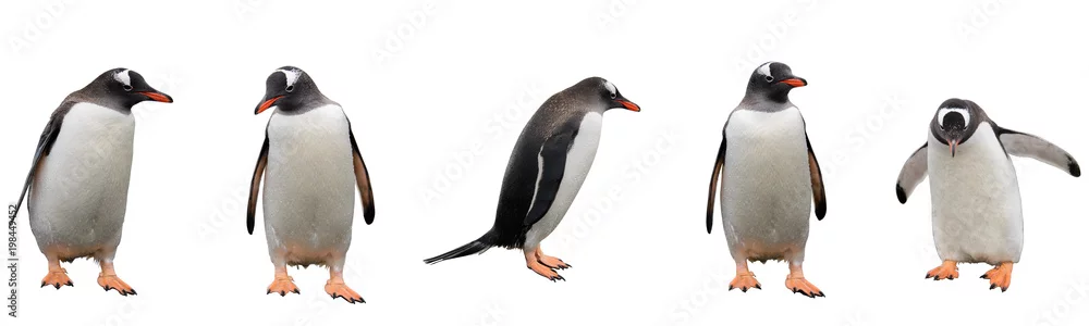 Fototapeta Pingwiny Gentoo na białym tle - ptaki - Picturewall.pl