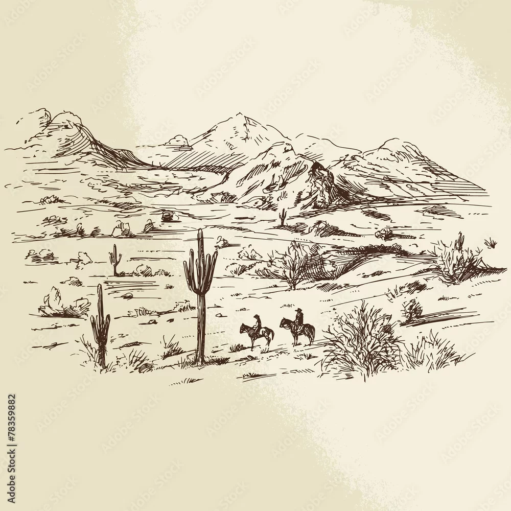 Fototapeta dziki zachód - ilustracja - pustynia - Picturewall.pl