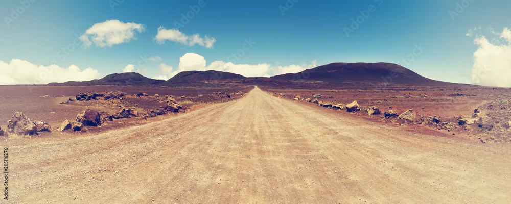 Fototapeta „równina piasków”: na drodze prowadzącej do wulkanu „piton pieca” na wyspie spotkania na Oceanie Indyjskim.