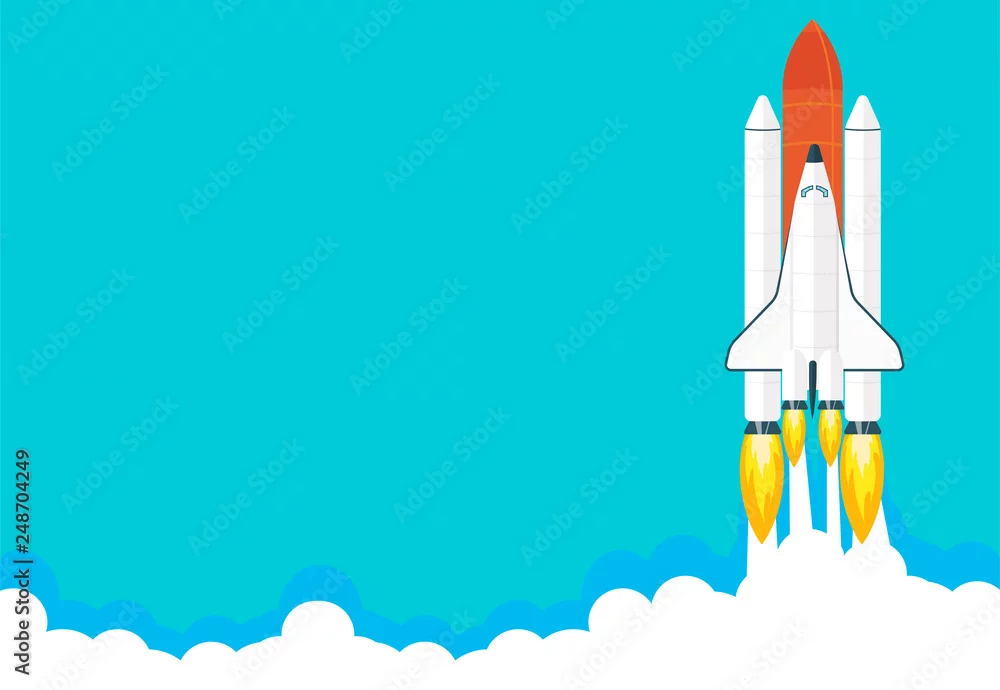 Fototapeta Ilustracja uruchomienia promu kosmicznego. Koncepcja transparent uruchamiania firmy lub projektu. Ilustracja urządzony.