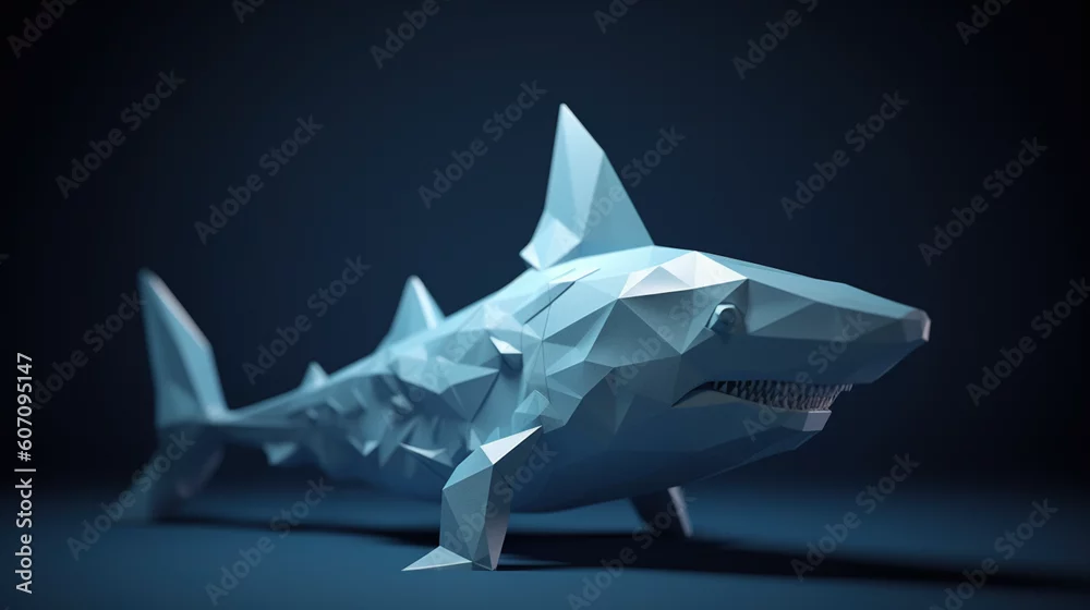 Fototapeta Żarłacz biały - origami rekin - ochrona mórz i oceanów - White shark - origami shark - marine and ocean conservation - AI Generated