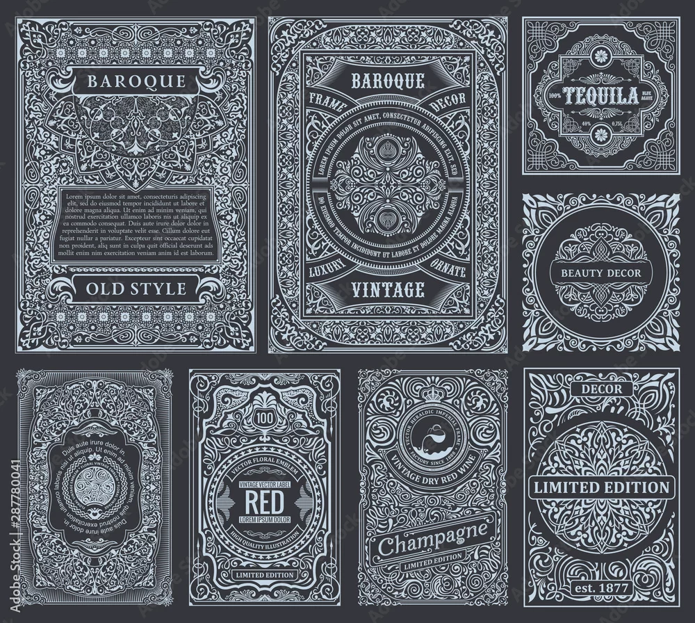Fototapeta Vintage wektor zestaw kart retro. Szablon karty z pozdrowieniami obramowanie lub zaproszenie