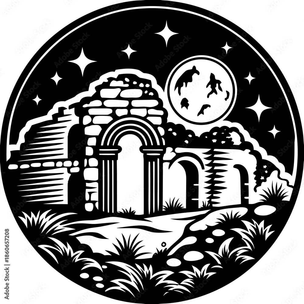 Fototapeta Mysterious Ancient Ruins Under Starry Night Sky - ryby - Picturewall.pl