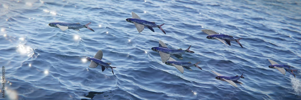 Fototapeta flying fish, school of Exocoetidae, background banner