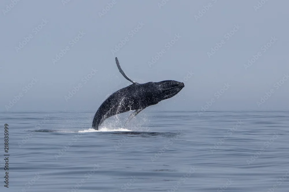Fototapeta Humpback Whale Breaches Out of Atlantic Ocean Off Cape Cod