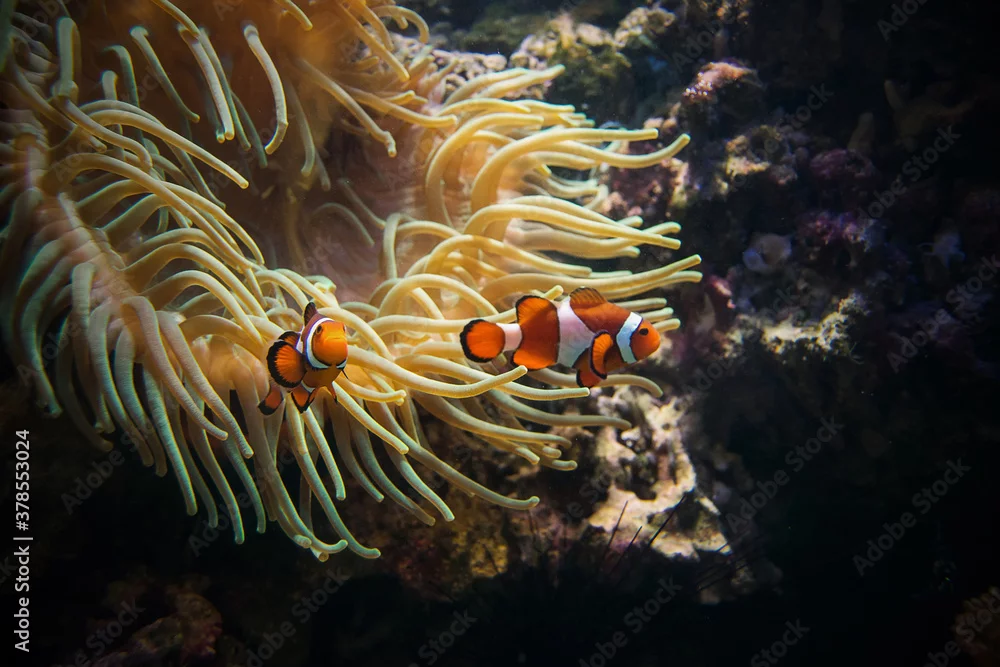 Fototapeta Ryby koralowe błazenki w akwarium w zoo w Ostrawie.