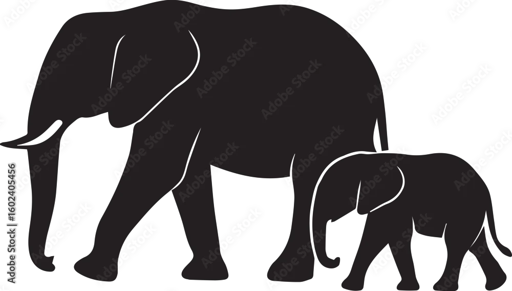 Fototapeta Charming elephant family illustration in cmyk and rgb colors