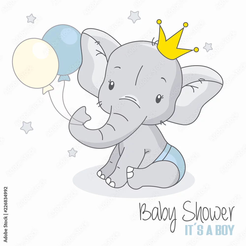 Fototapeta chłopiec prysznic. Słodki słoń z balonami. - słonie - Picturewall.pl