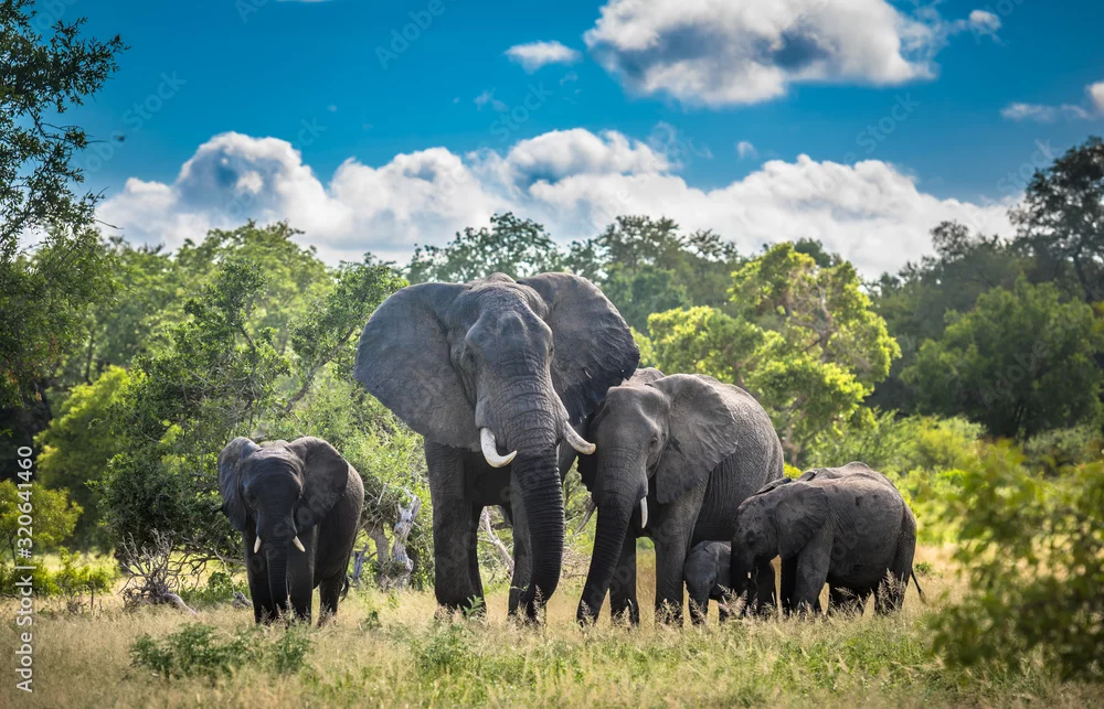 Fototapeta Elephants family in Kruger National Park, South Africa. - słonie - Picturewall.pl