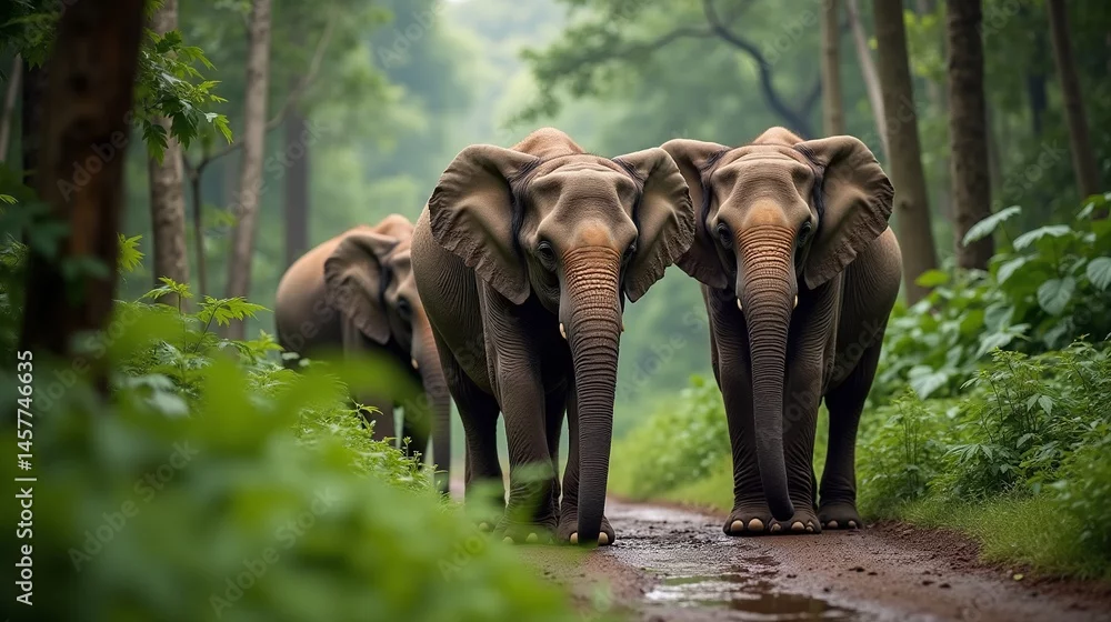 Fototapeta Jungle Symphony: The Elephant Family's Dance