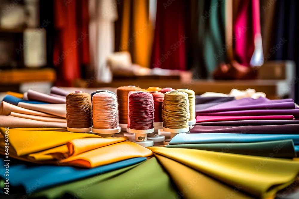 Fototapeta Vue intérieur d'un magasin de tissus, rayons avec tissus et bobines de fil