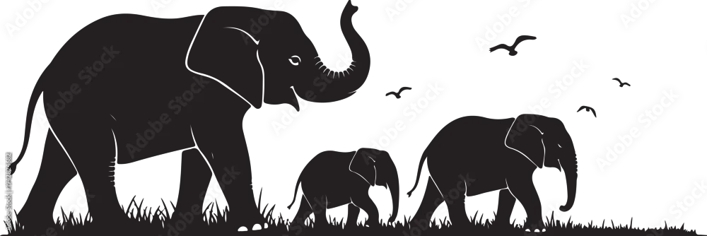 Fototapeta white background elephant family black silhouette vector - słonie - Picturewall.pl