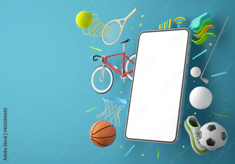 Fototapeta sport live online from a smartphone. sport competition program. game application. white screen mobile. sport online game. golf football volleyball tennis object. background copy space. 3d rendering. - sportowe - Picturewall.pl